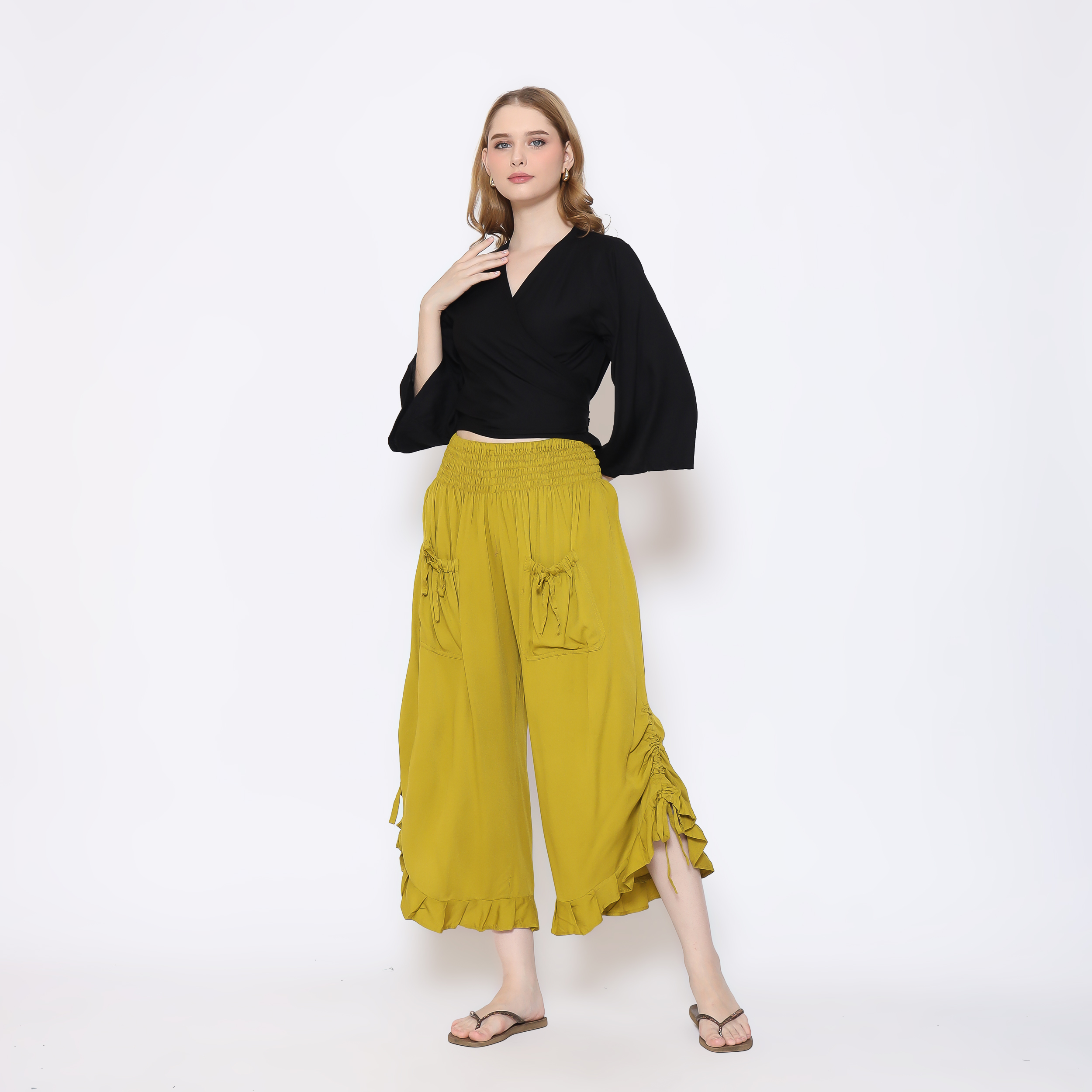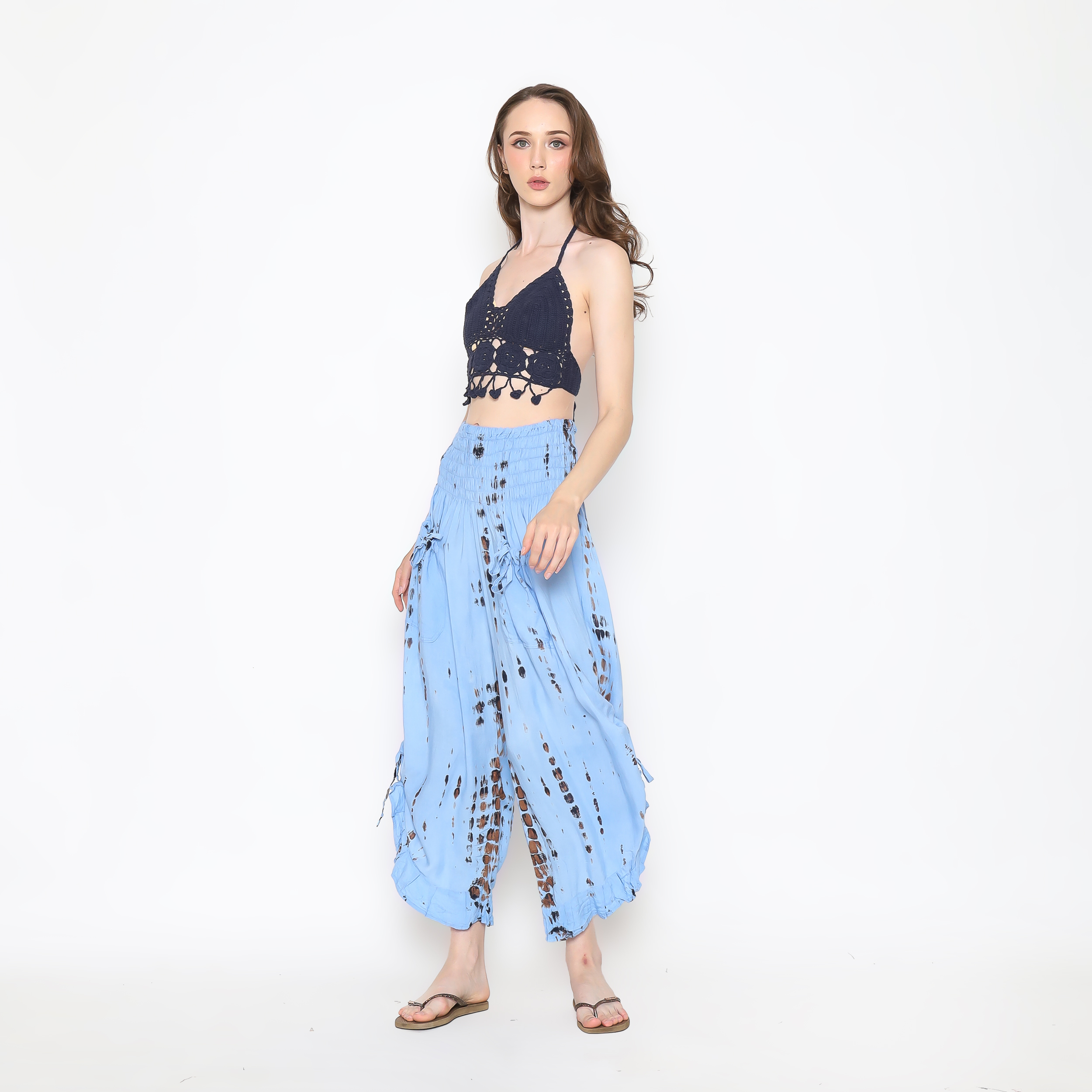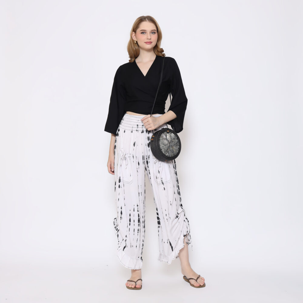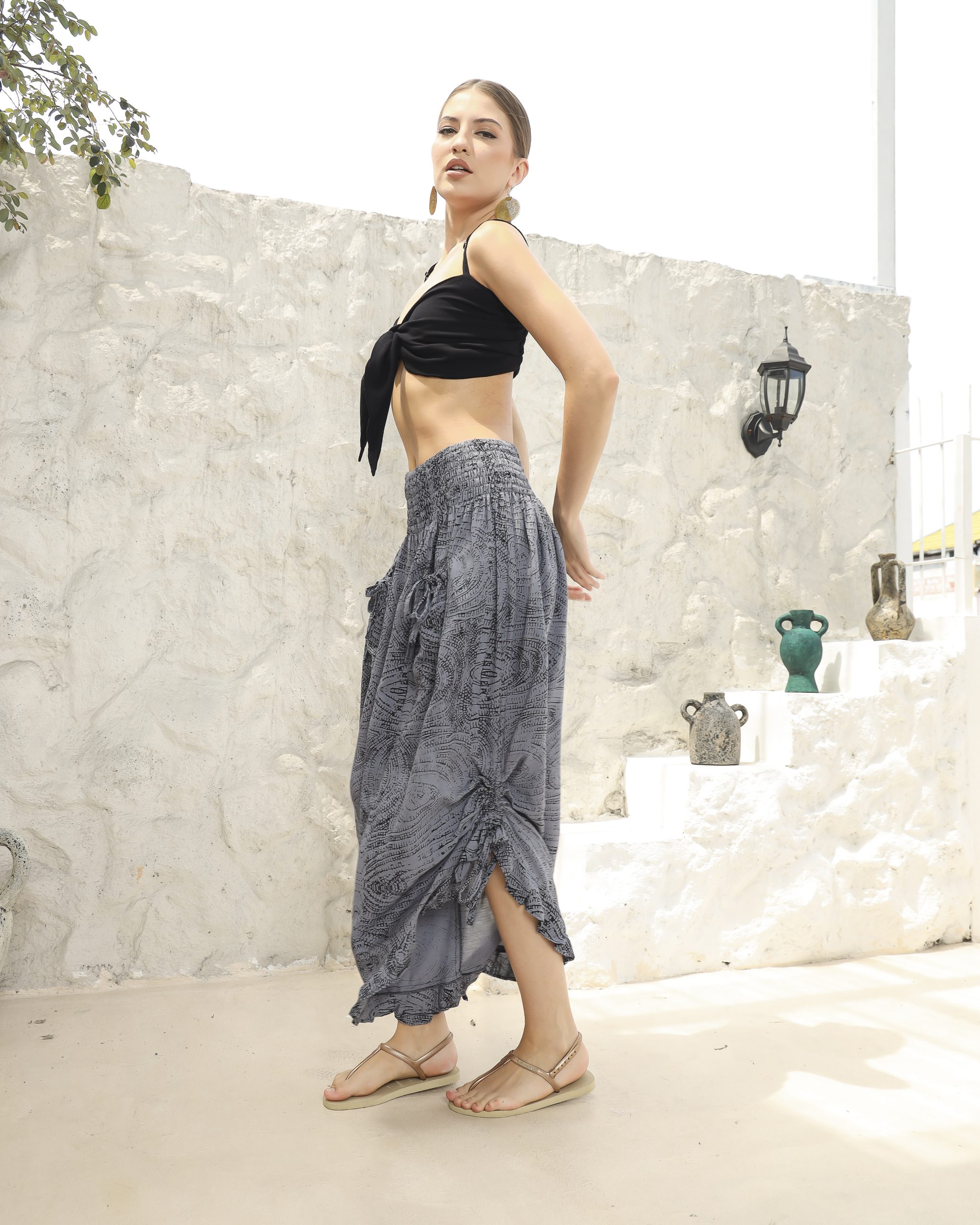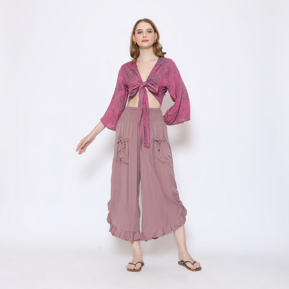 Discover the perfect blend of comfort and chic with our stunning Boho Pants featuring a charming ruffle hem. These pants are designed for the modern individual who values both fashion and functionality: