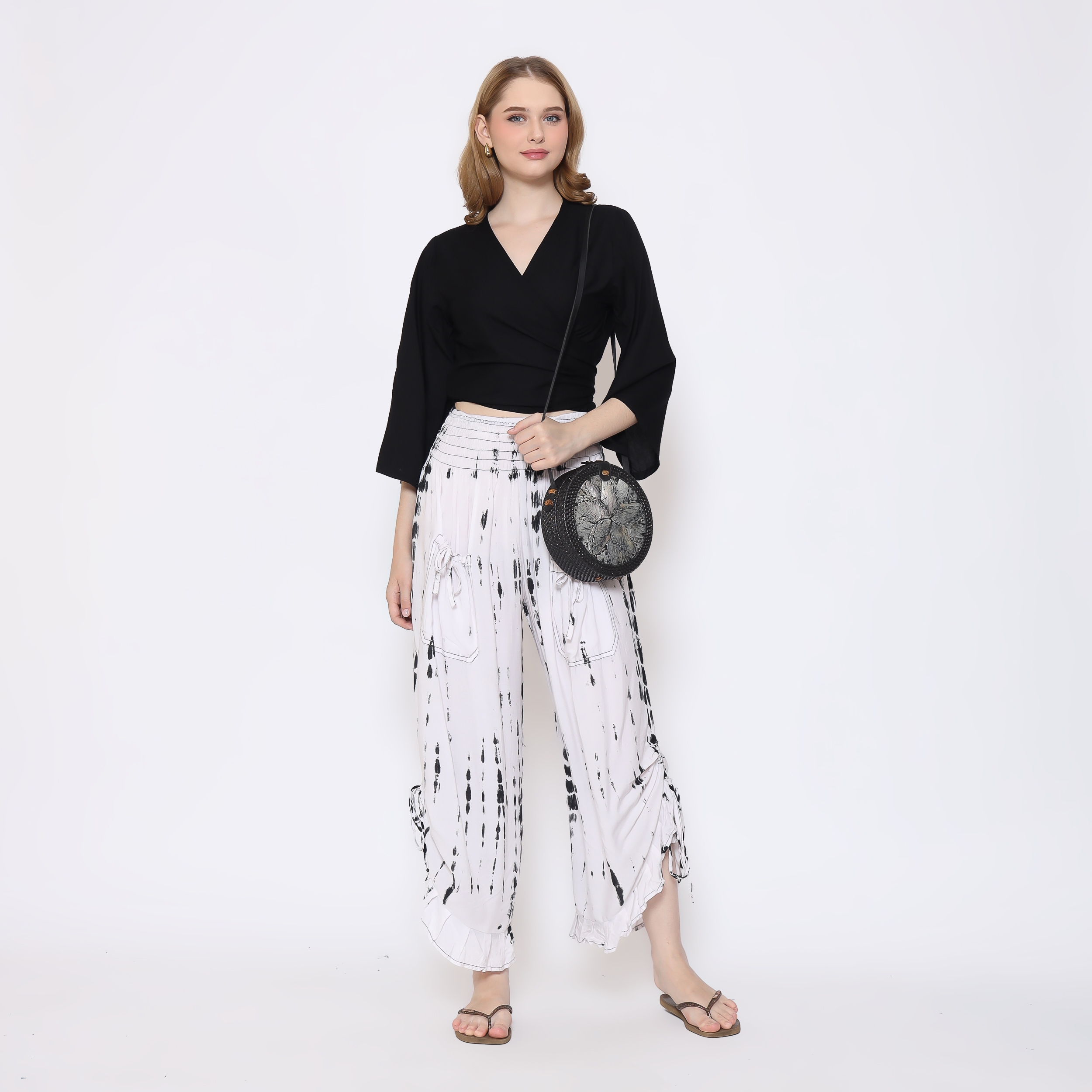 - Functional Design: Keep essentials secure with two deep pockets, each adorned with decorative ties that add a touch of flair.